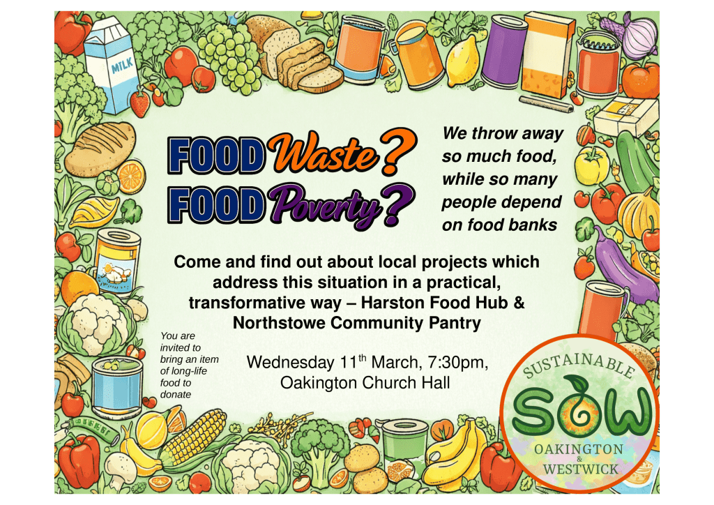 We are delighted to welcome Kordula and Rachel from Harston and Maria from Sustainable Northstowe, to tell us about inspiring projects which tackle food waste and food poverty, helping people and the environment. Come along! If you are able, you are invited to bring an item of long-life food.
