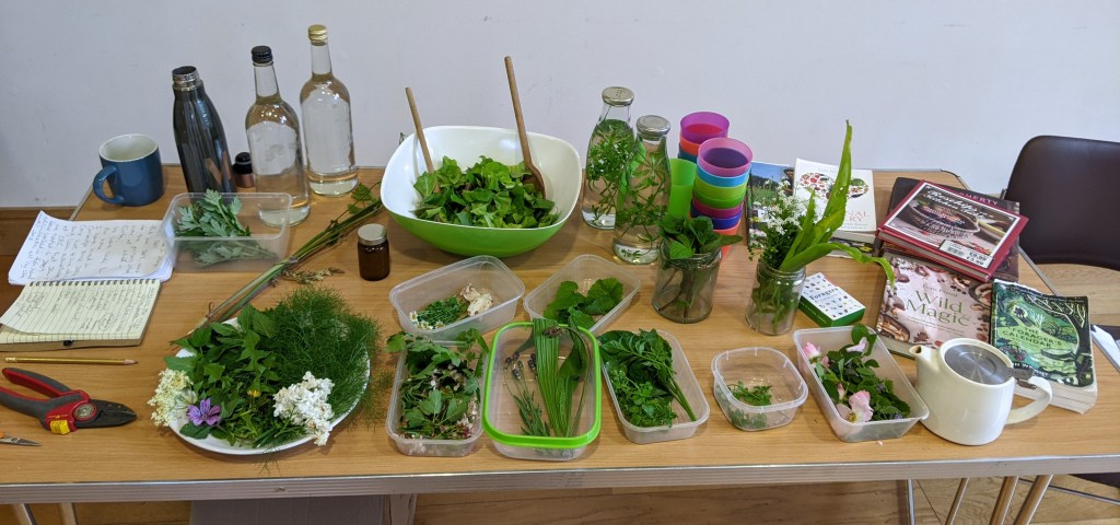 Miria explained that learning about foraging had been a lockdown project, something to do with her son out of doors. An extension of her interest in gardening, gardens and being a qualified aromatherapist. Various useful books came her way; she particularly recommends The Forager’s Calendar by John Wright.