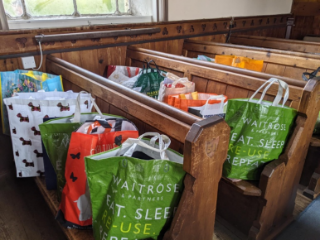 The community pantry distributes packaged food to anyone in Harston or the surrounding villages experiencing food poverty (self-referral, no voucher required). It supports about 40 families, who specify what food they like/need, and collect a pre-packed bag.