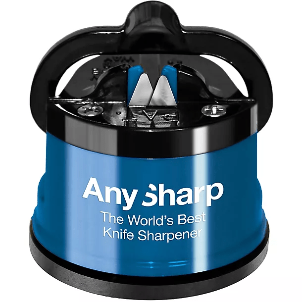 Anysharp – there are lots of kitchen knife sharpeners but this is the only brand/type Nikki has found that works. (Available from Lakeland.) You just pull the knife through. It will maintain an already mostly sharp knife but won’t rescue a blunt one.
